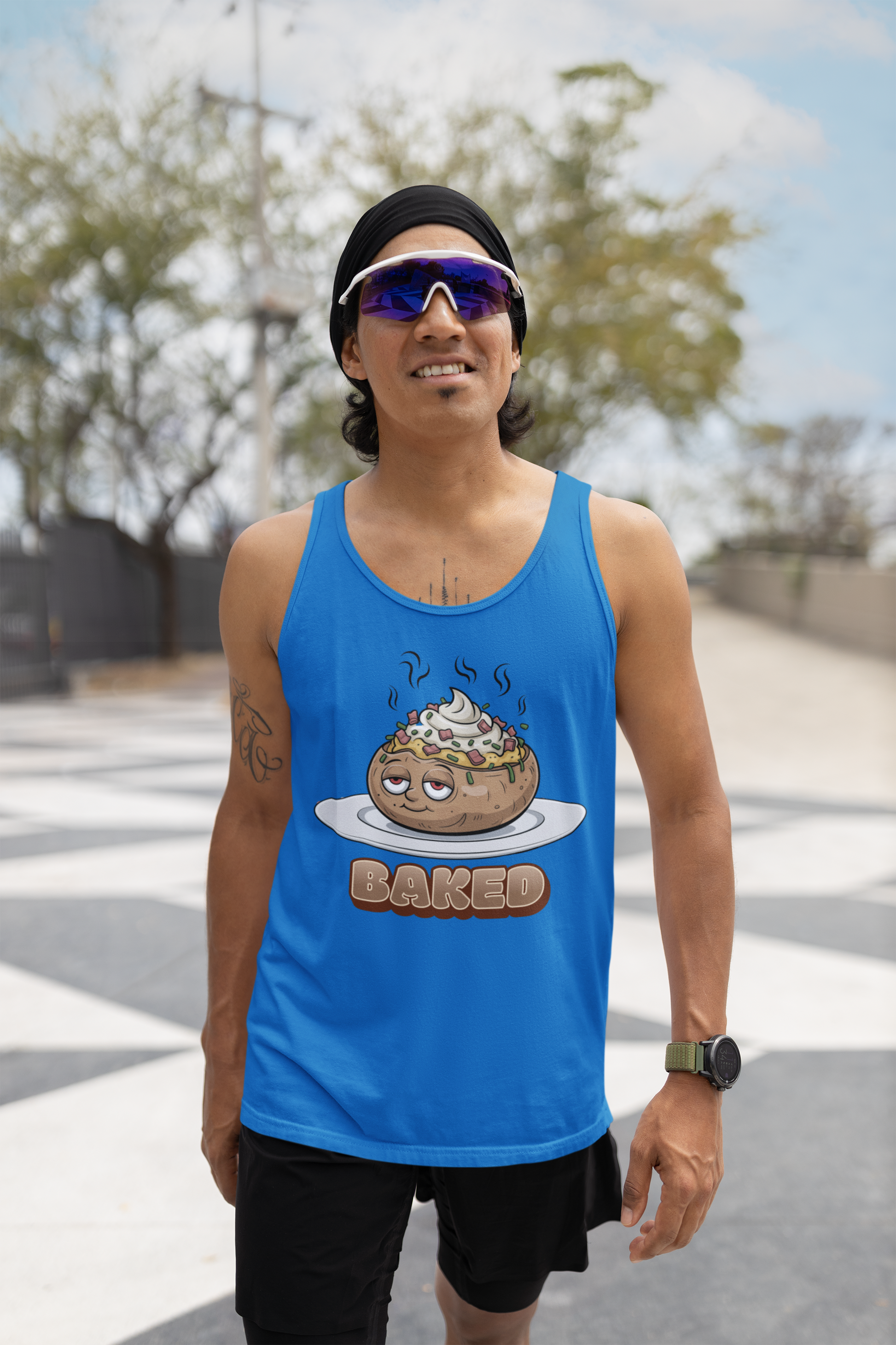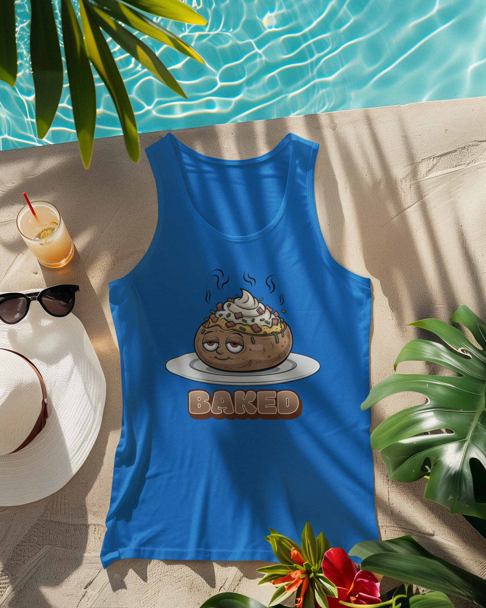 Soak up the sun and serve some spudtacular style with this cartoon baked potato tank! Featuring a chill, buttered-up tater just livin’ the baked life, this top is crispy where it counts and loaded with vibes. Whether you're sizzlin’ in the sun or mashin’ it at the beach, this tank’s got the kind of energy that says, "I yam who I yam." Soft, breezy, and hot potato-approved — it's the ultimate summer side dish for your wardrobe.