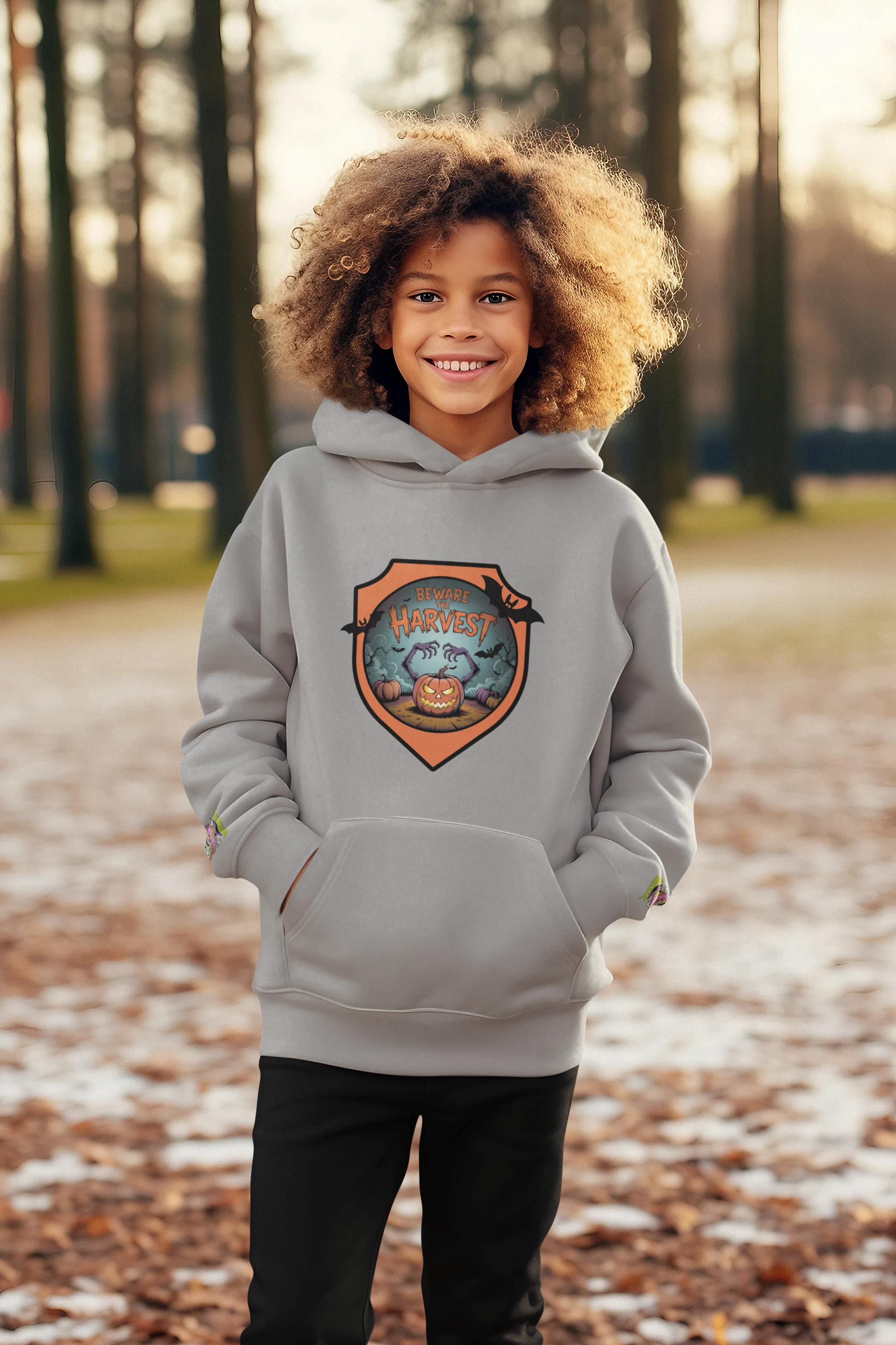 For the kid who loves a little spooky mixed with a lot of fun! The Spudeez “Beware the Harvest” Hoodie features a mischievous cartoon pumpkin with a spooky face and playful arms, ready to bring some Halloween mischief to every adventure. Cozy enough for cool autumn nights and durable enough for trick-or-treating, pumpkin patch visits, or haunted hayrides.