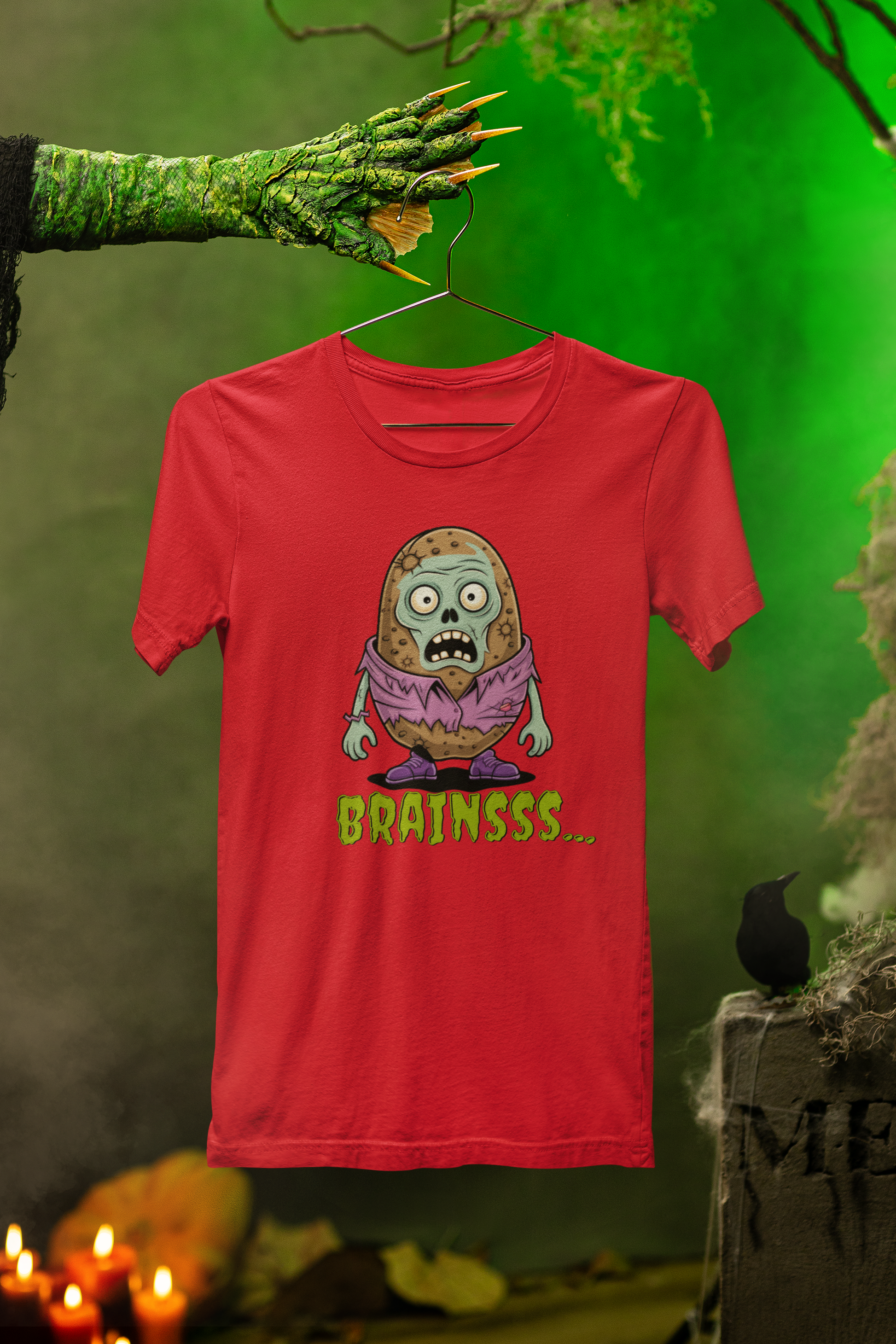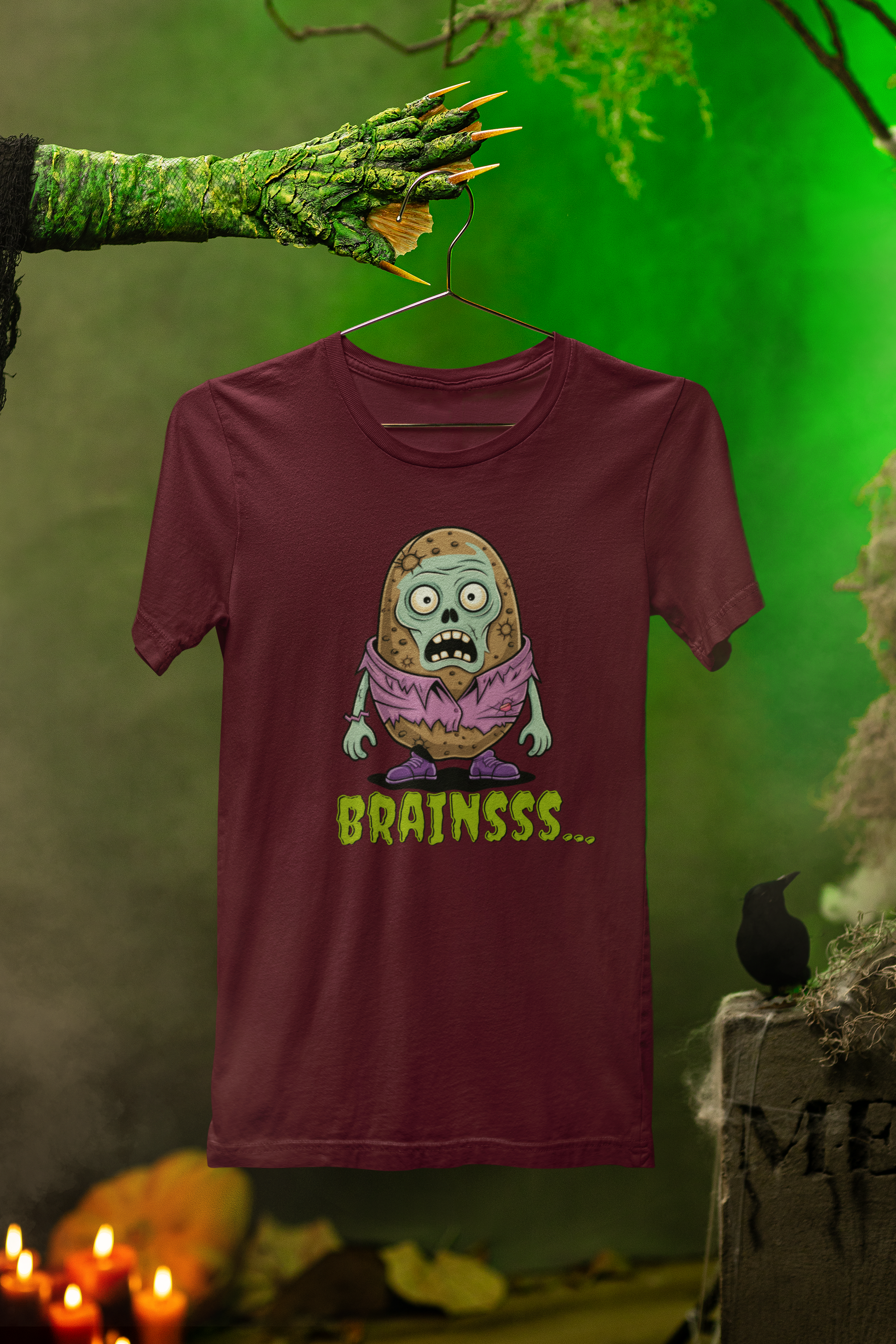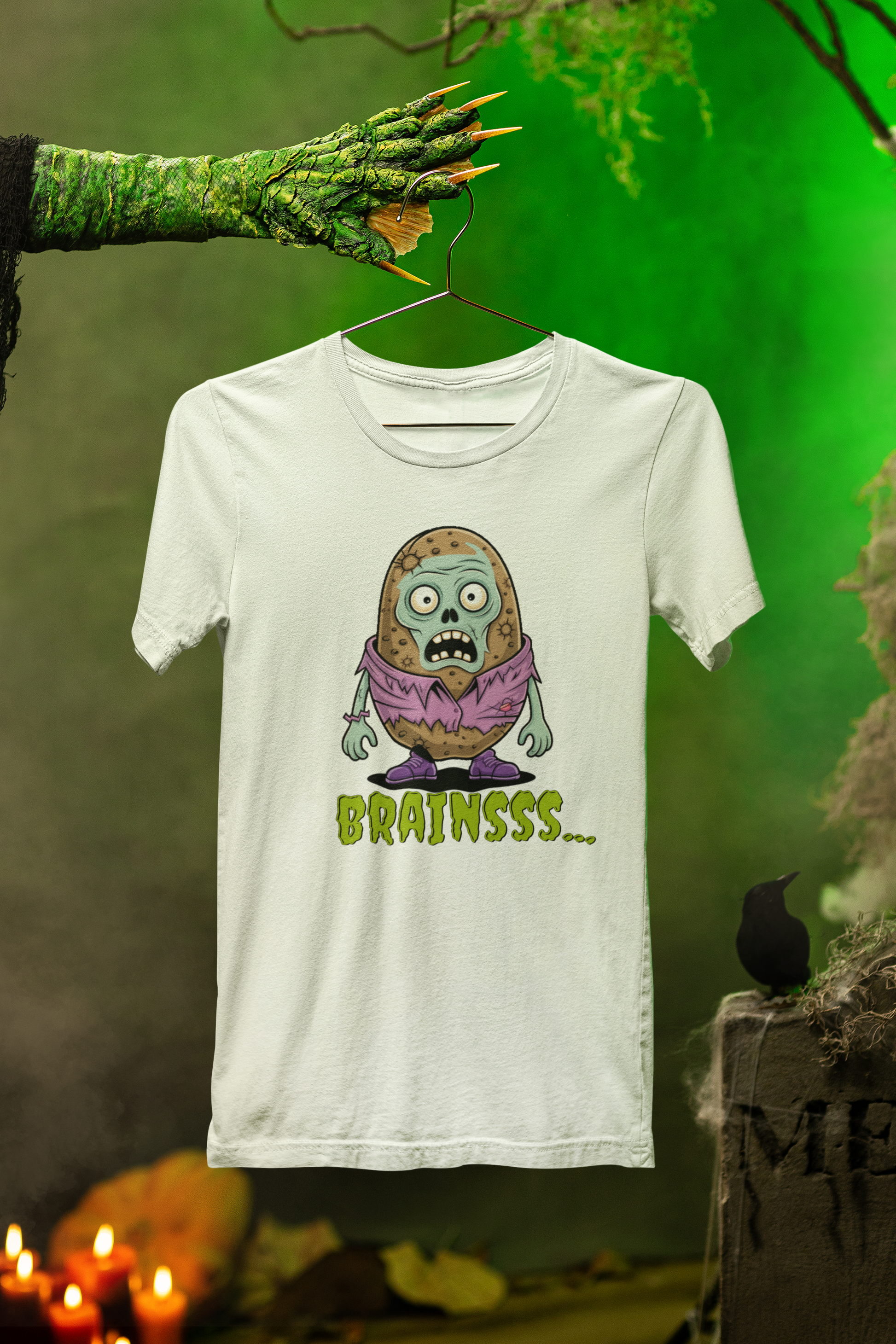 Brains! (Potato style, of course.) This playful Zombie Brains Tee brings a spooky-cute twist to your Halloween wardrobe—perfect for trick-or-treating, haunted houses, or just showing off your love for all things frightfully fun.