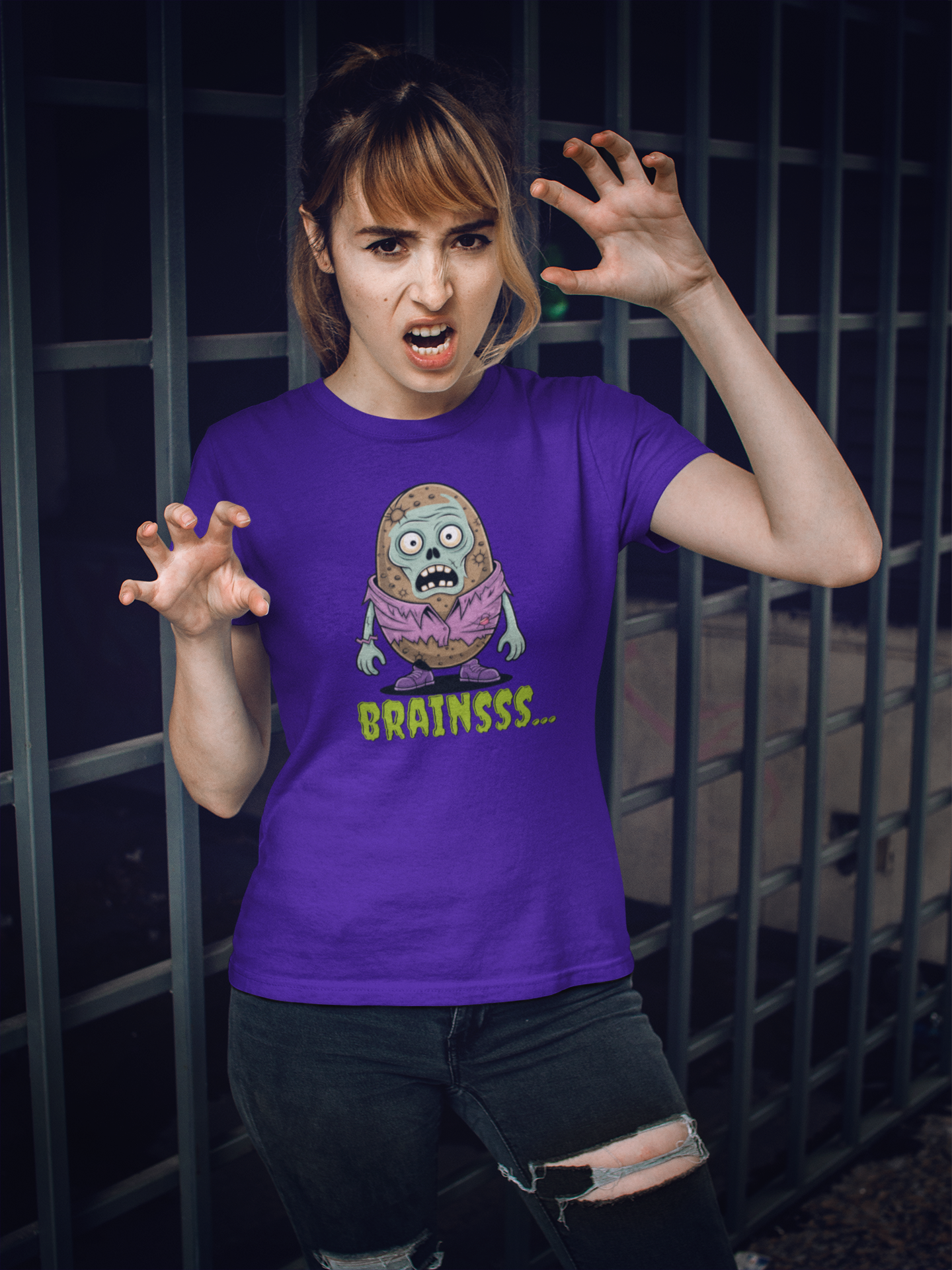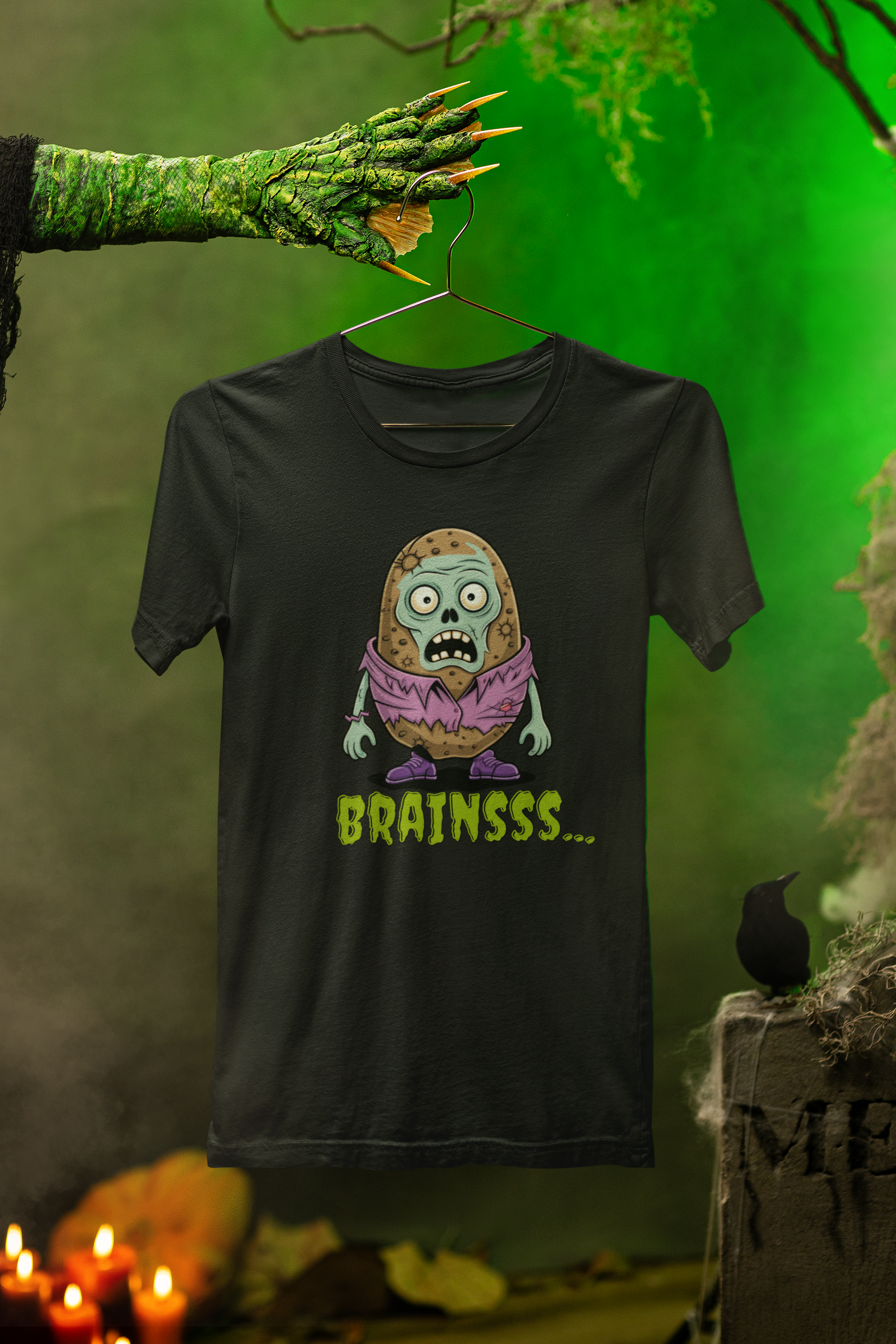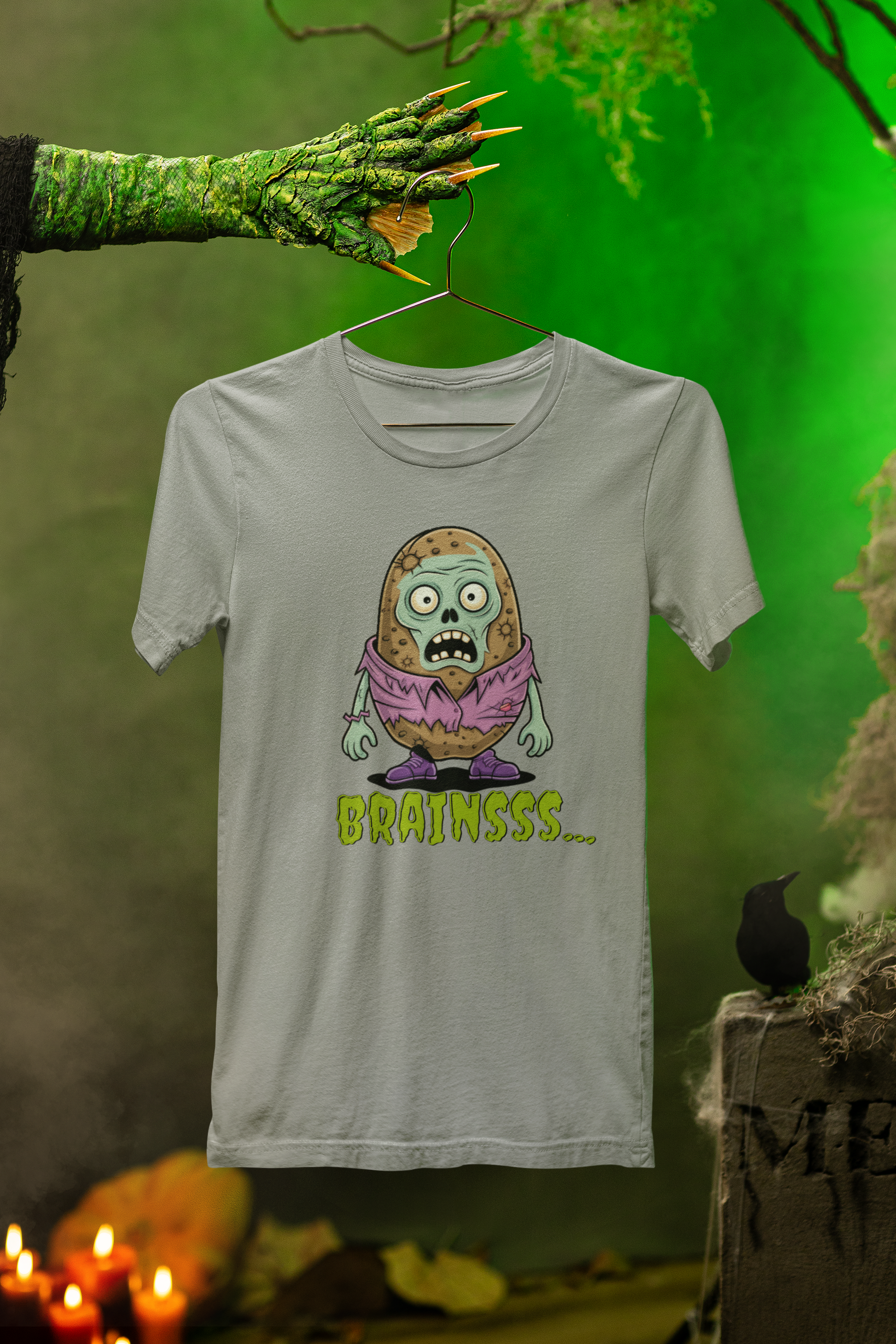 Brains! (Potato style, of course.) This playful Zombie Brains Tee brings a spooky-cute twist to your Halloween wardrobe—perfect for trick-or-treating, haunted houses, or just showing off your love for all things frightfully fun.