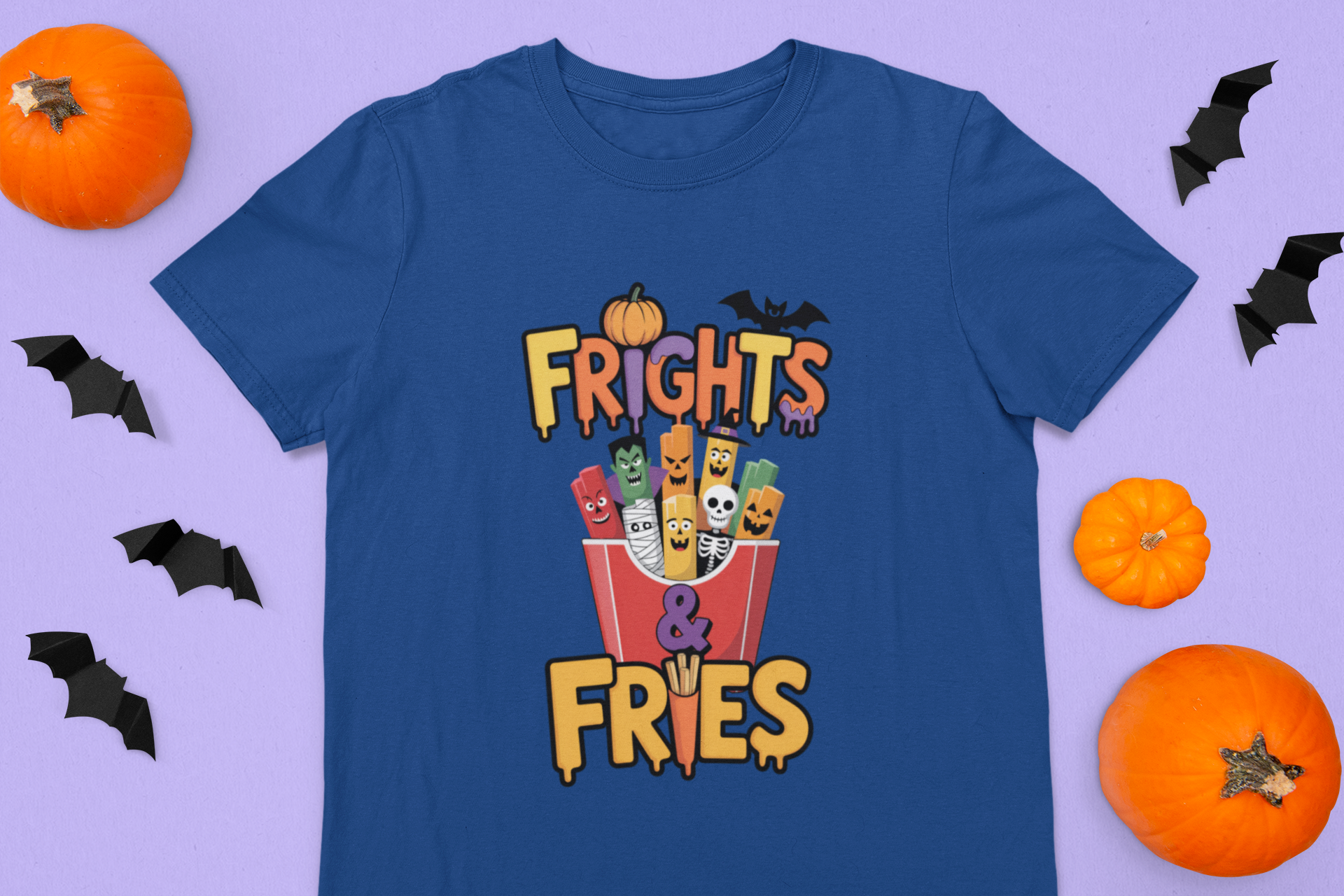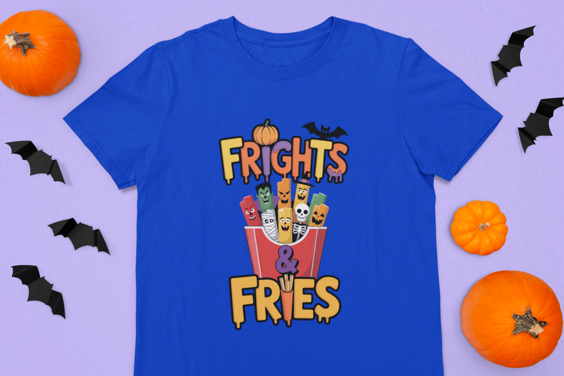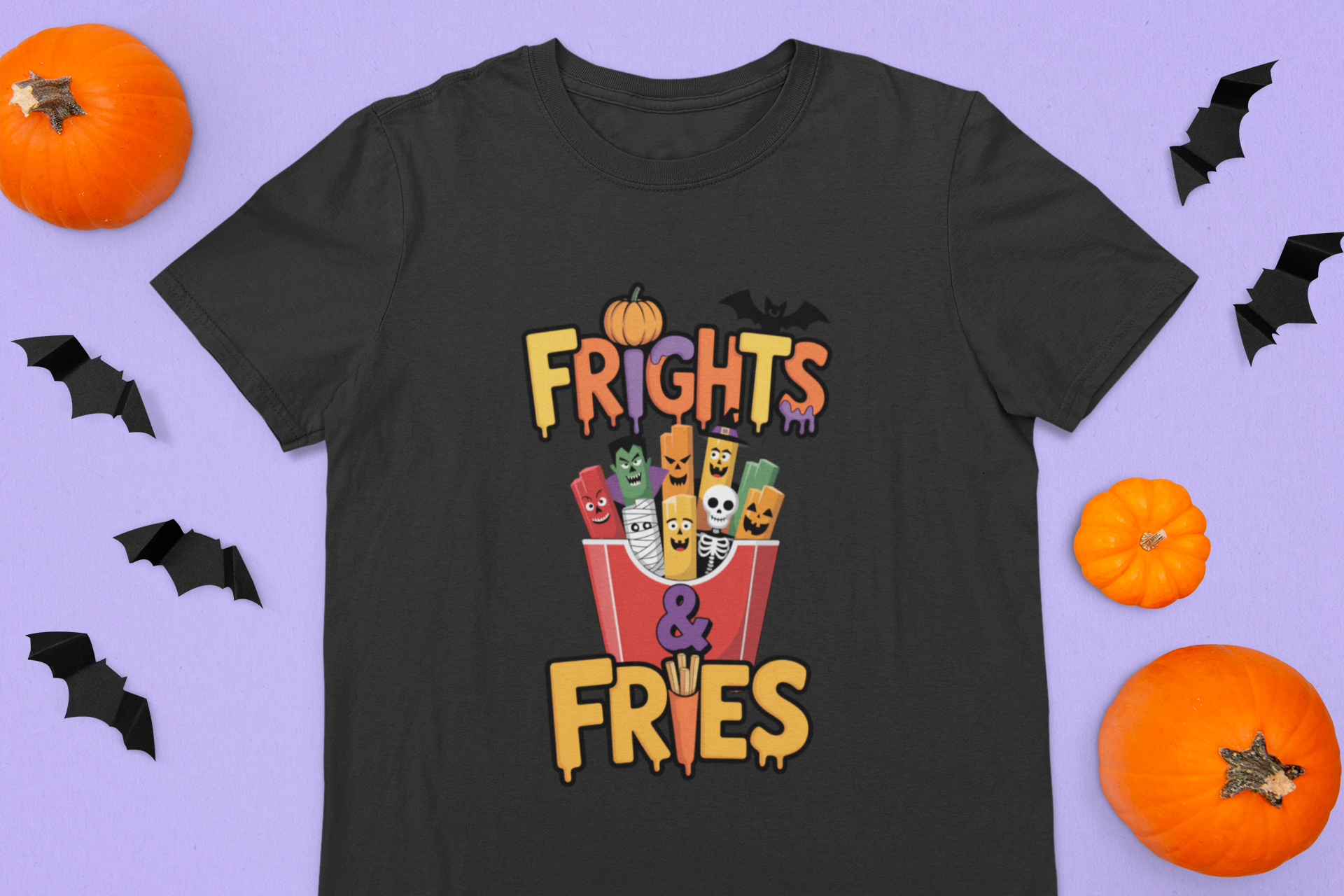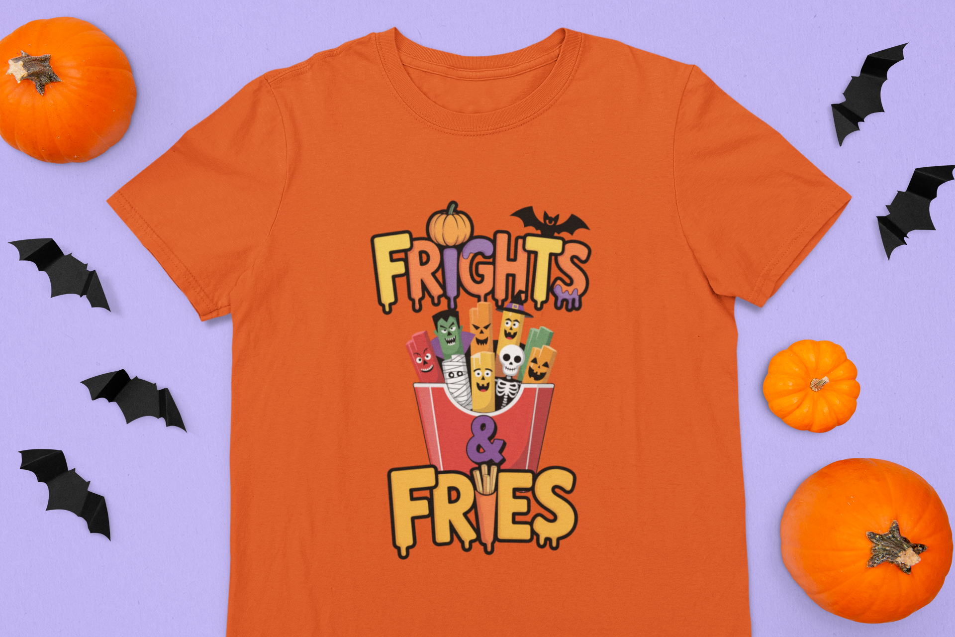 Ready for a spook-tacular snack attack? The Frights & Fries Kids Tee is here to serve up Halloween fun with a side of giggles! This playful shirt stars a box of silly fries, each one dressed as a classic monster—think mummies, skeletons, vampires, and more—making it the perfect pick for kids who love a good scare (and an even better laugh).