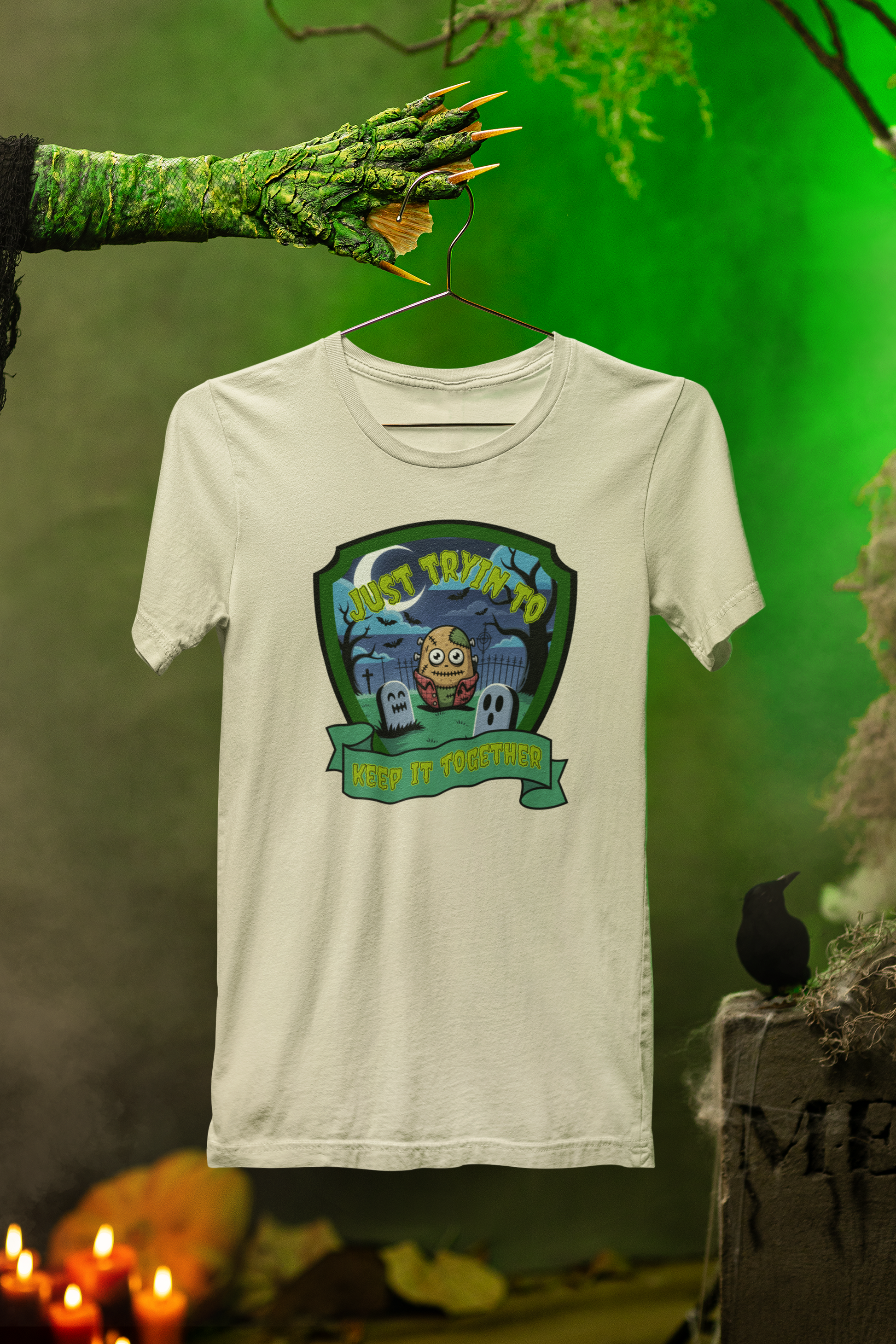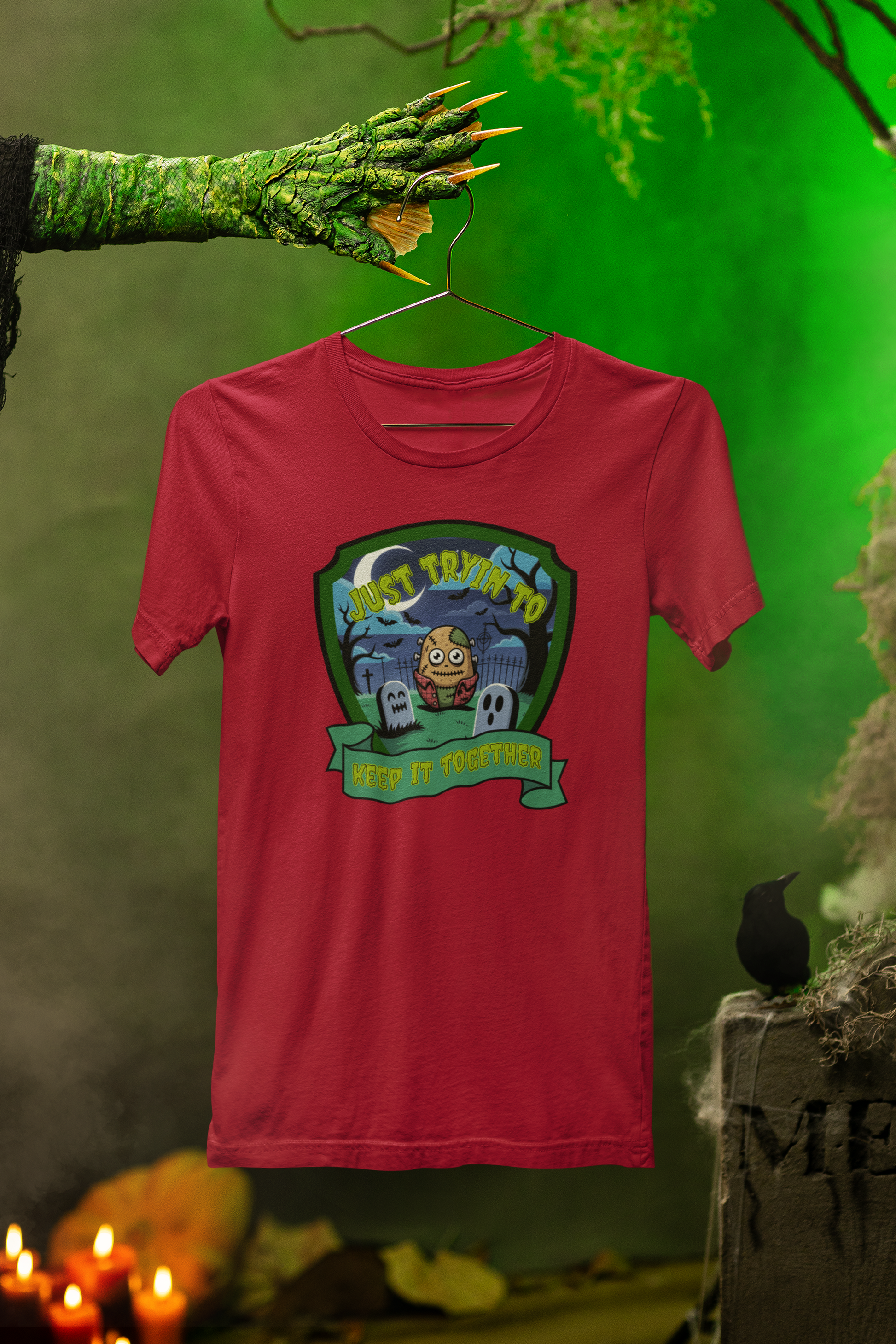 Get mashed with monster style! This Halloween, spook it up with the Just Tryin’ To Keep It Together Tee—where classic horror meets tuber terror. Featuring a cartoon Frankenstein potato with bolts, stitches, and a whole lot of spud-tastic charm, this shirt is perfect for trick-or-treating, haunted hayrides, or just creeping it real with your crew.