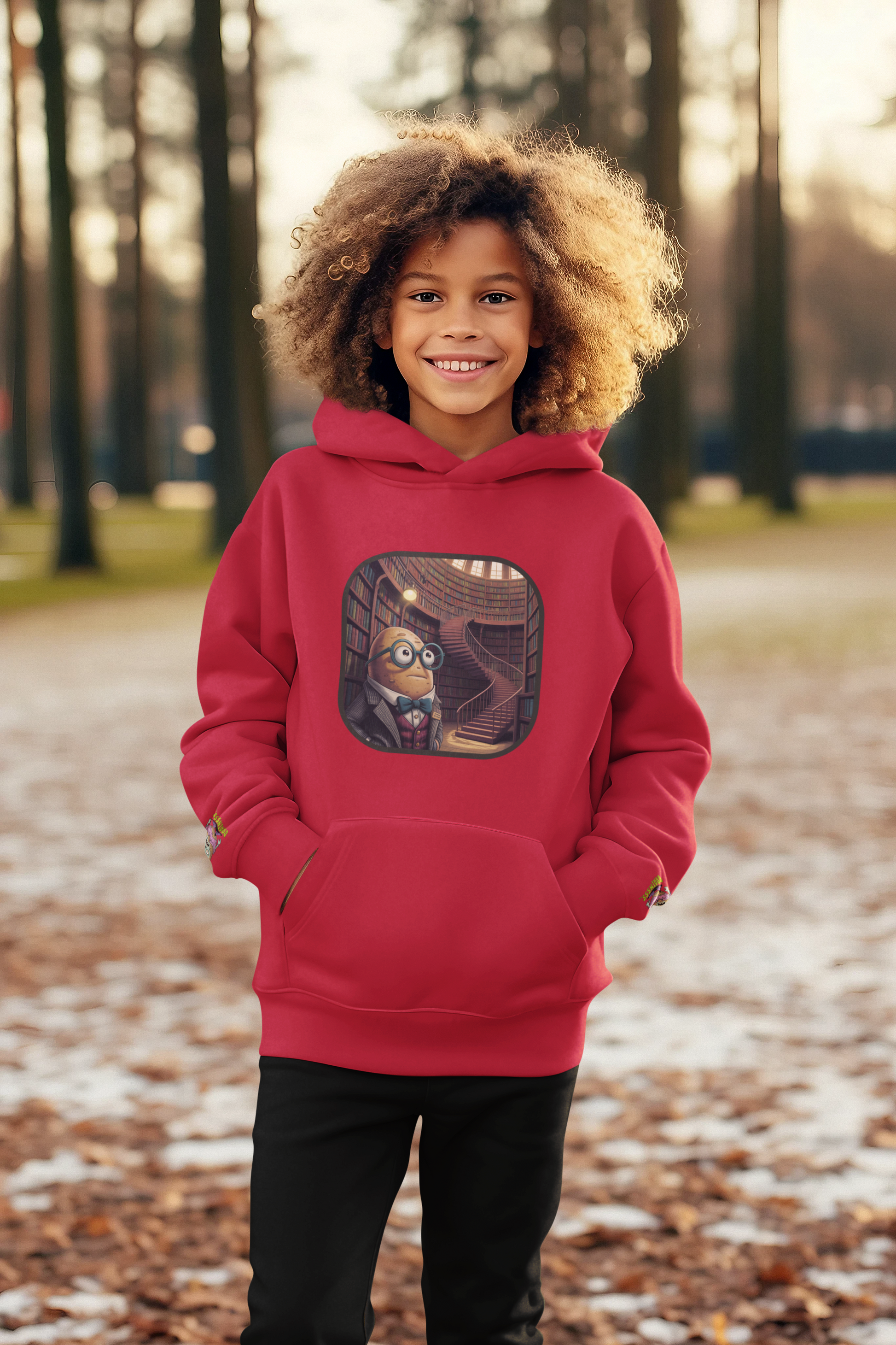 For the kid who loves to get lost in a good story! The Spudeez “Lost in the Library” Hoodie is perfect for bookworms, dreamers, and little readers with big imaginations. Featuring a cartoon potato surrounded by stacks of books, it’s cozy enough for quiet reading time and durable enough for recess adventures.