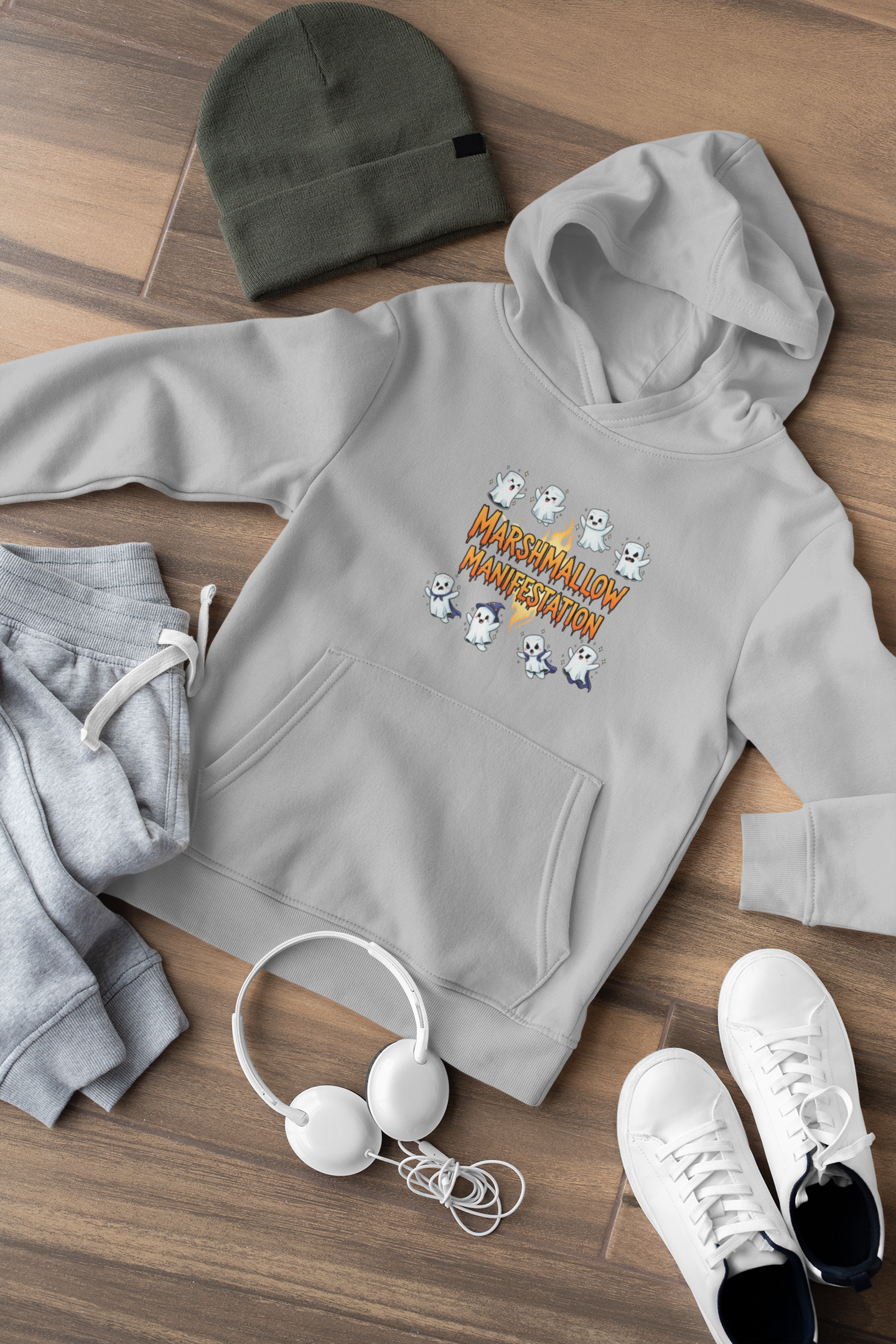 Manifest some cozy magic! The Marshmellow Manifestation Kids Hoodie is made for dreamers, gigglers, and marshmallow enthusiasts who know that a little sweetness and a lot of imagination can turn any day into a treat. Featuring a delightfully whimsical marshmallow design, this hoodie brings cartoon-inspired vibes and big comfort—perfect for kids who want to keep their style squishy and their spirits high.