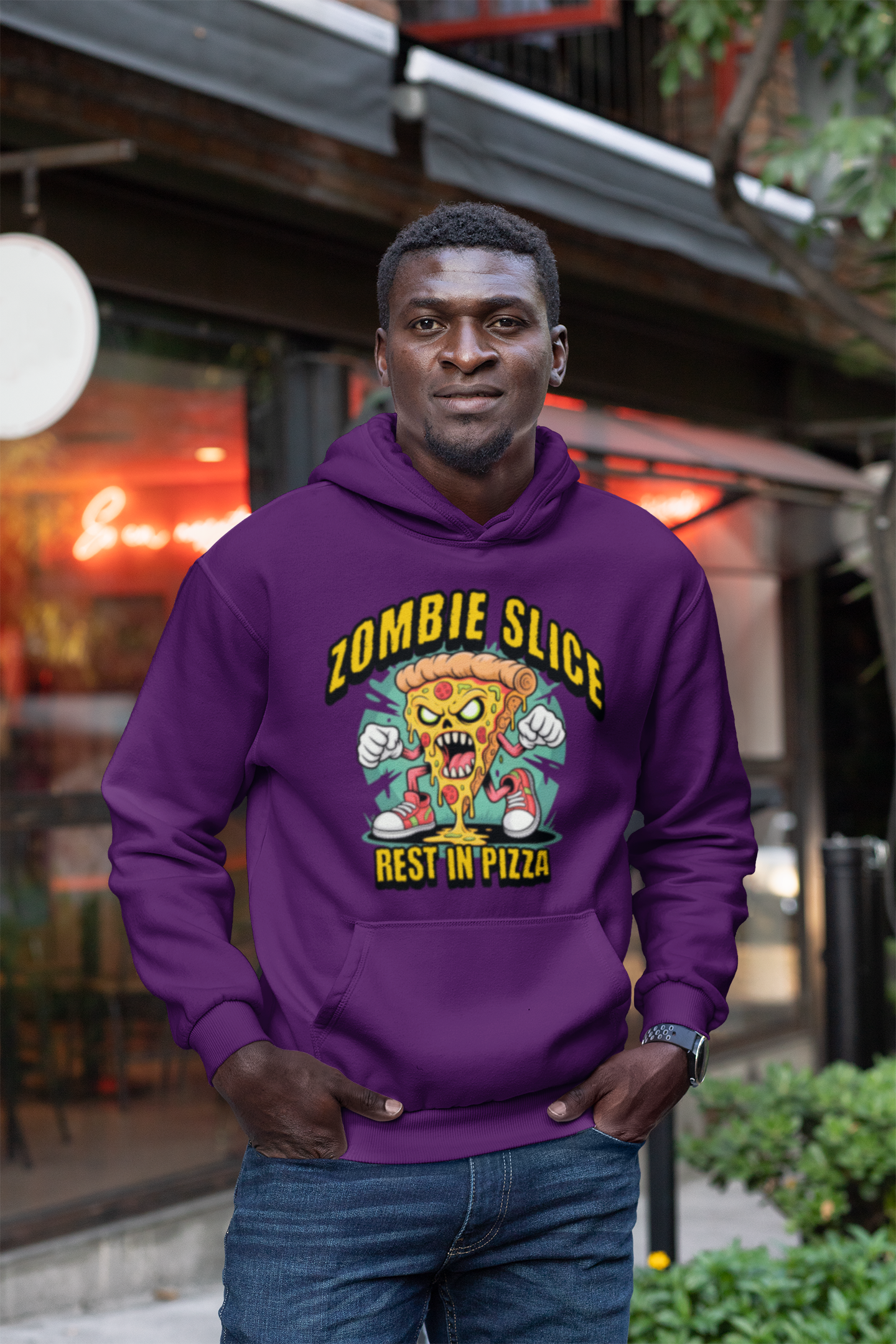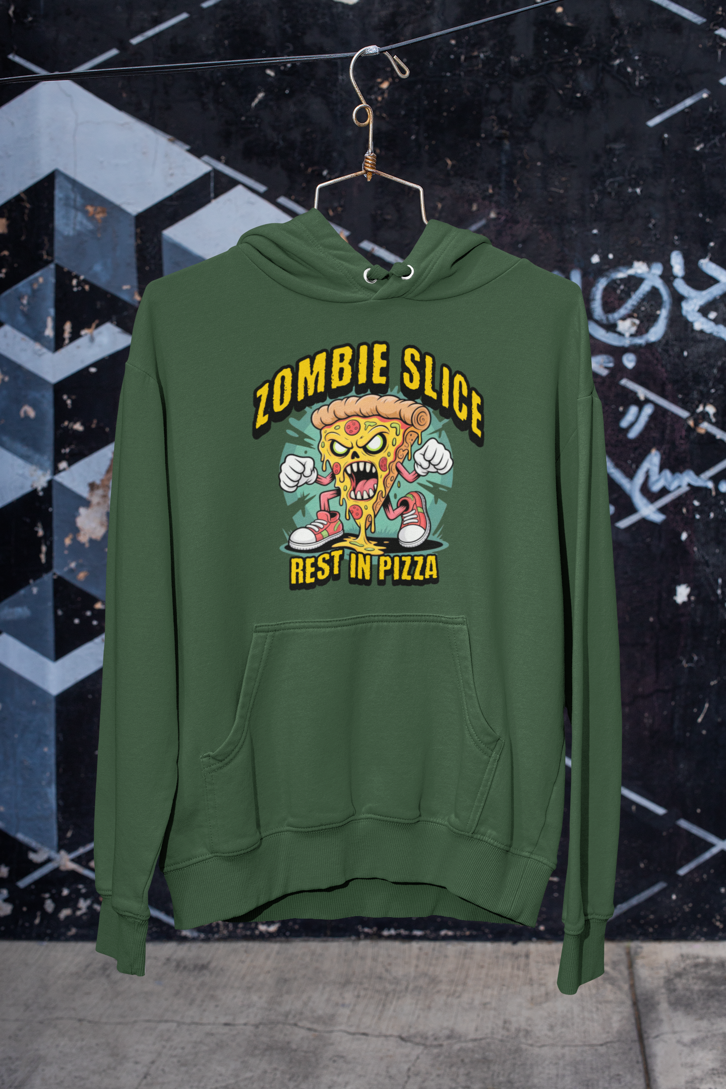 - Features the “Rest in Pizza Zombie” graphic—cheesy, spooky, and totally unique