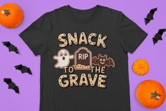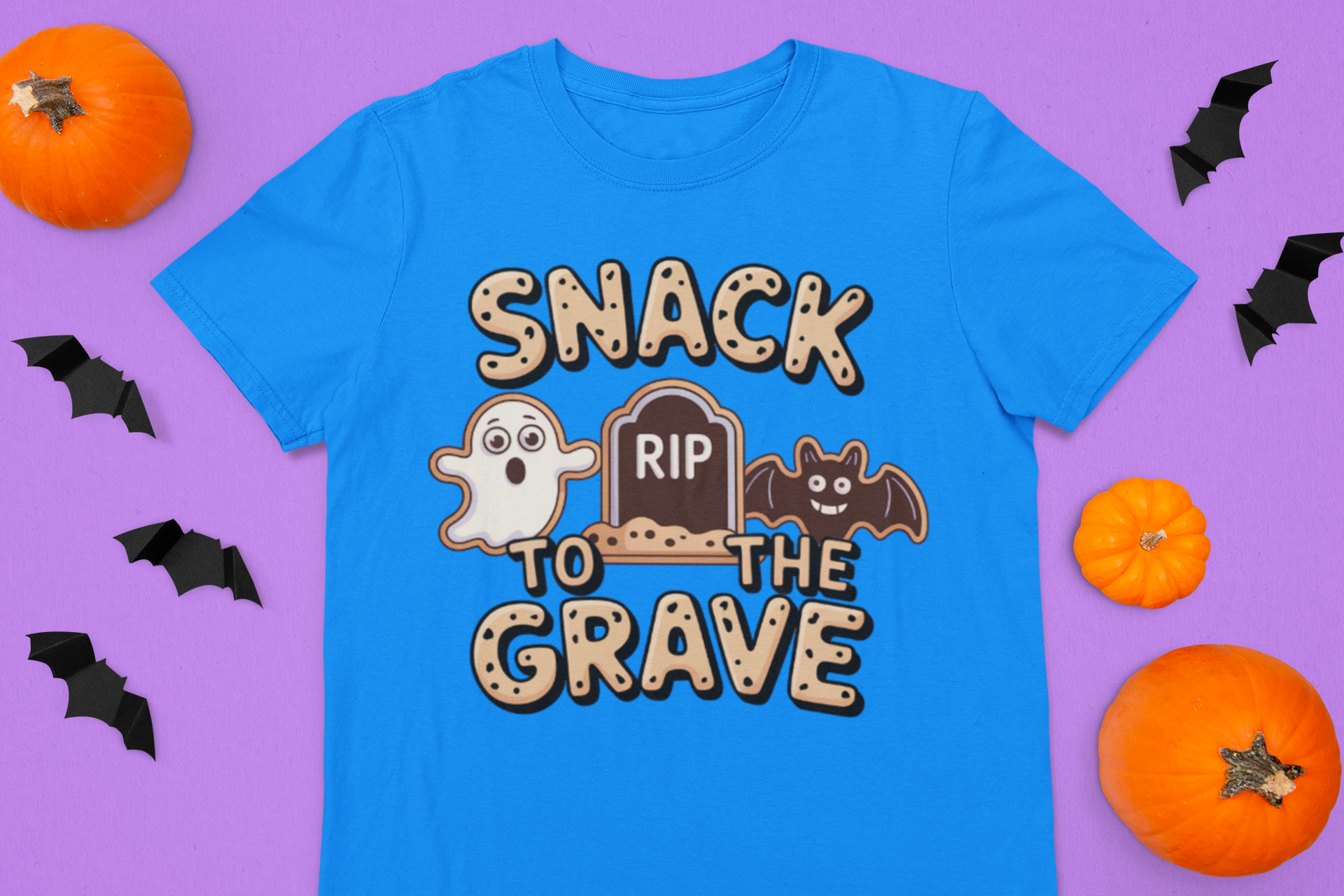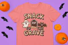 Boo! Snack time just got a whole lot spookier (and sweeter). The Snack To The Grave Kids Tee features three adorable chocolate chip cookies—a ghost, a tombstone, and a bat—ready to bring giggles, treats, and Halloween spirit wherever your little monster goes. Perfect for trick-or-treating, fall festivals, or just showing off their silly side at school.