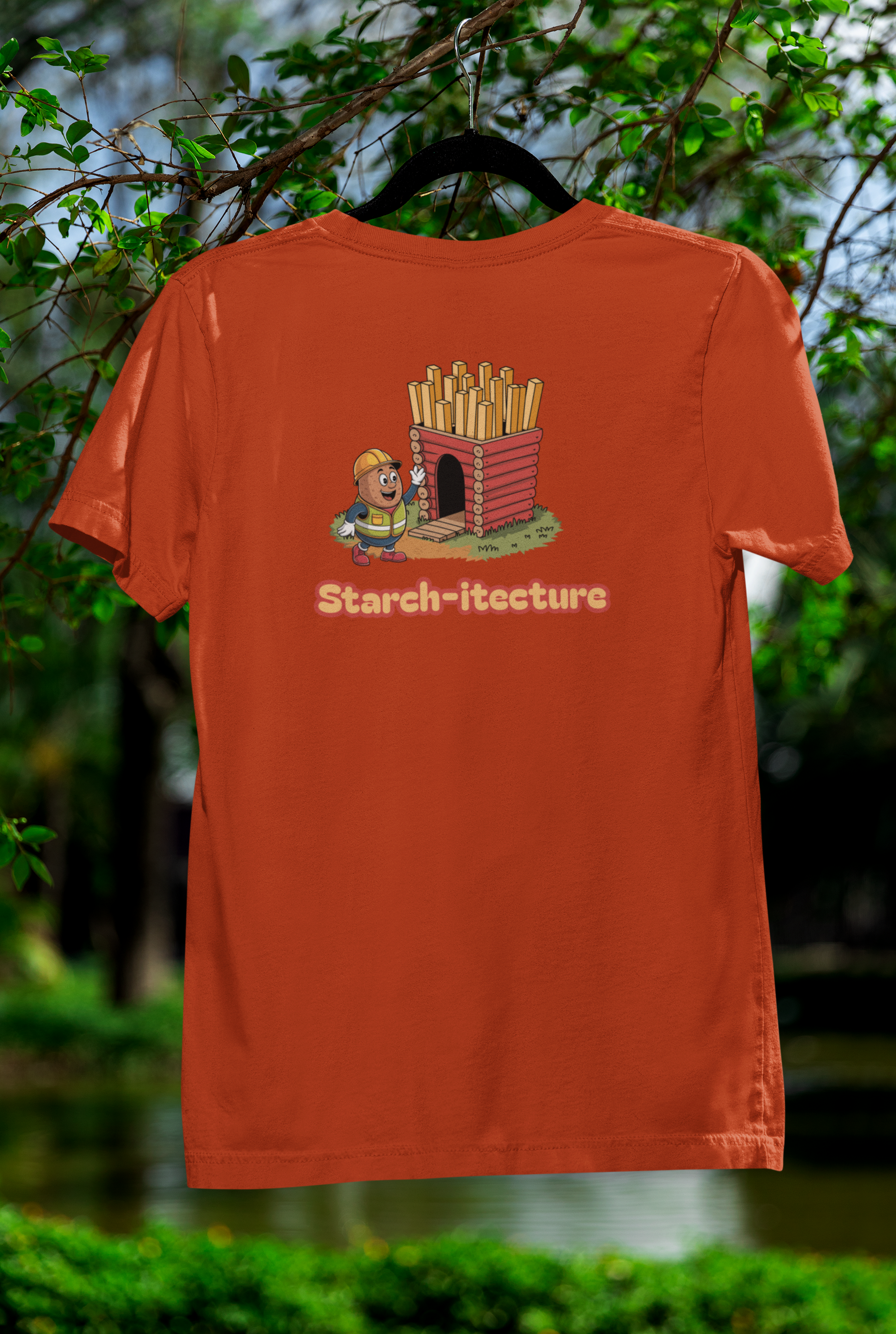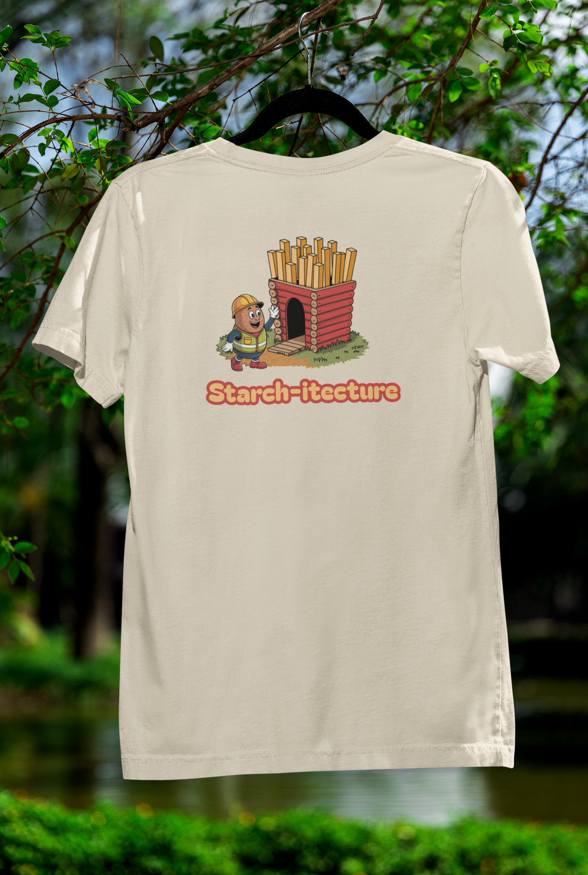 Build a masterpiece of comfort and fun with the Starch-itect Tee! Designed for creative minds and potato fans alike, this shirt brings a playful twist to your everyday look—perfect for sketching, snacking, or just making people smile.