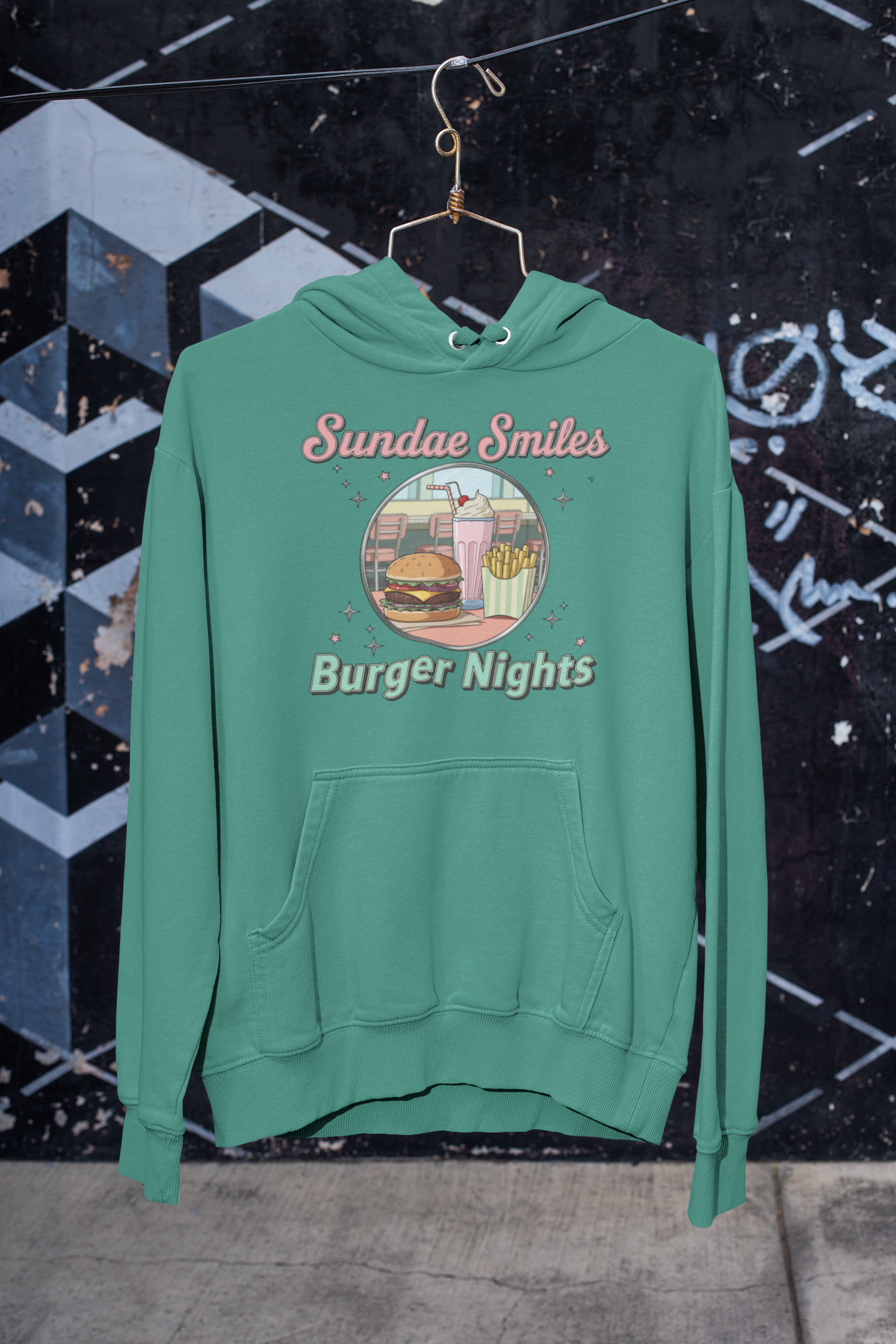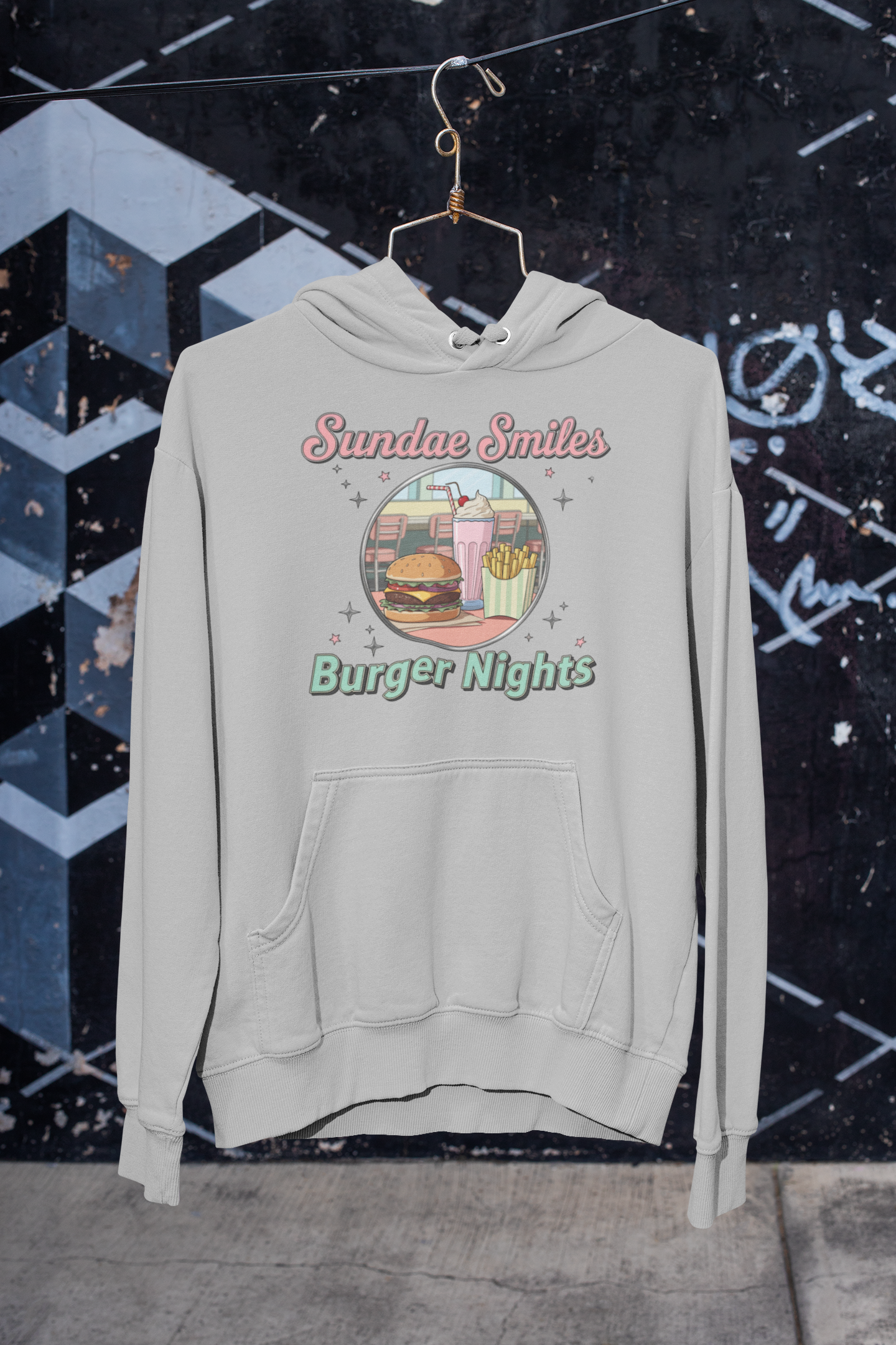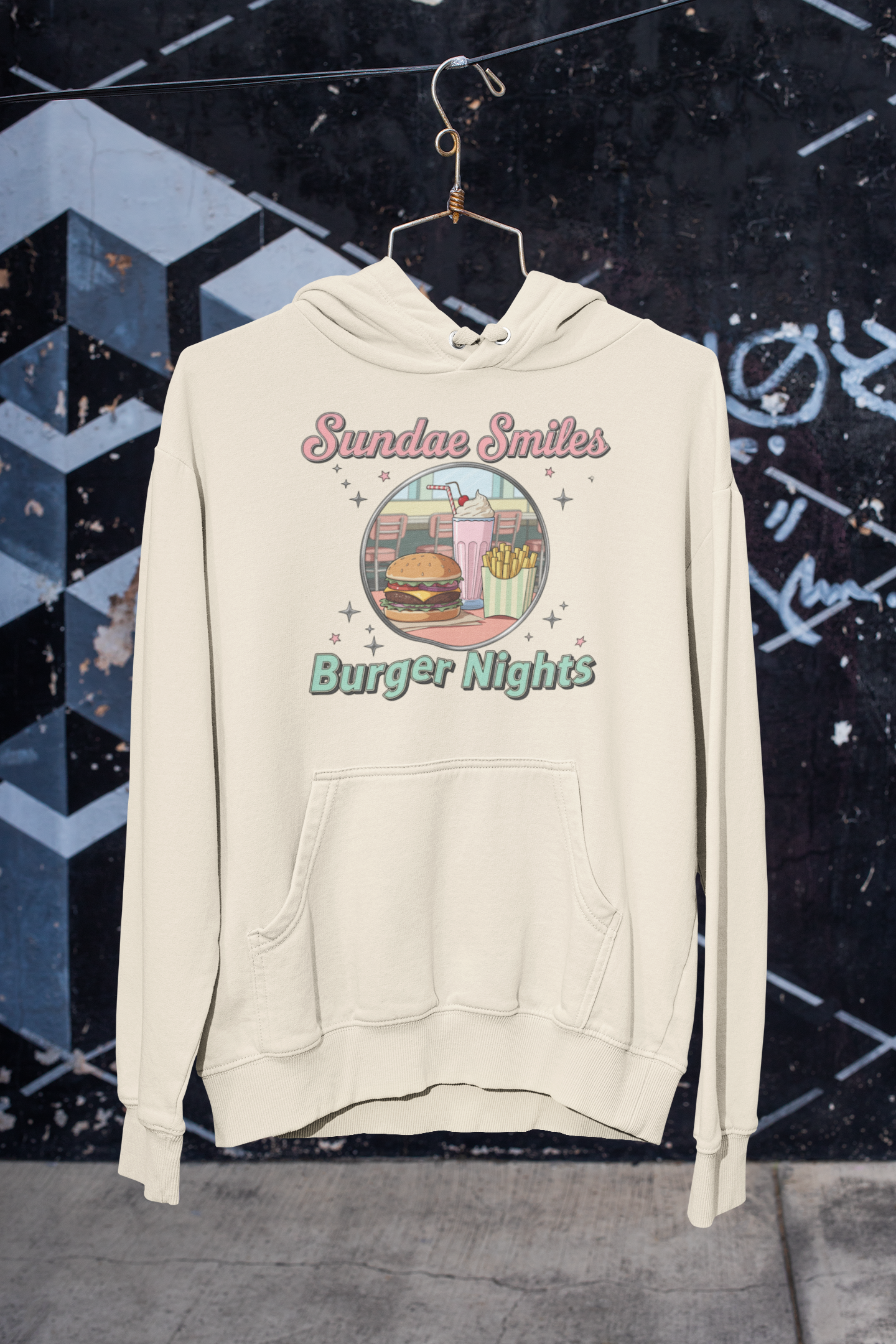 The Sundae Smiles and Burger Nights Hoodie is all about good eats and good vibes! Made from ultra-soft Gildan Softstyle fleece, it’s your new favorite for late-night burger runs, ice cream parties, or just lounging with friends. The fun foodie graphic and comfy classic fit make every night feel like a treat.