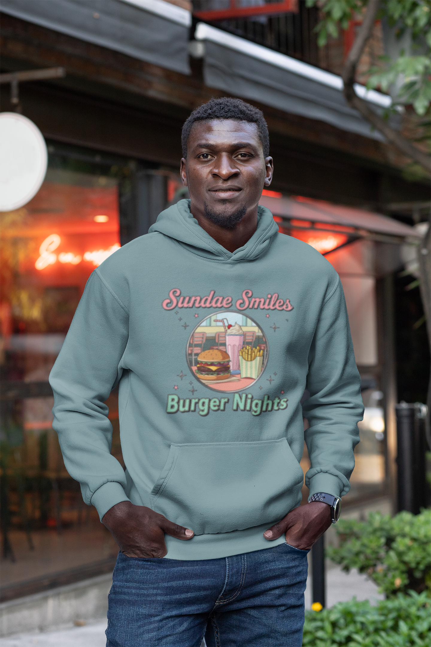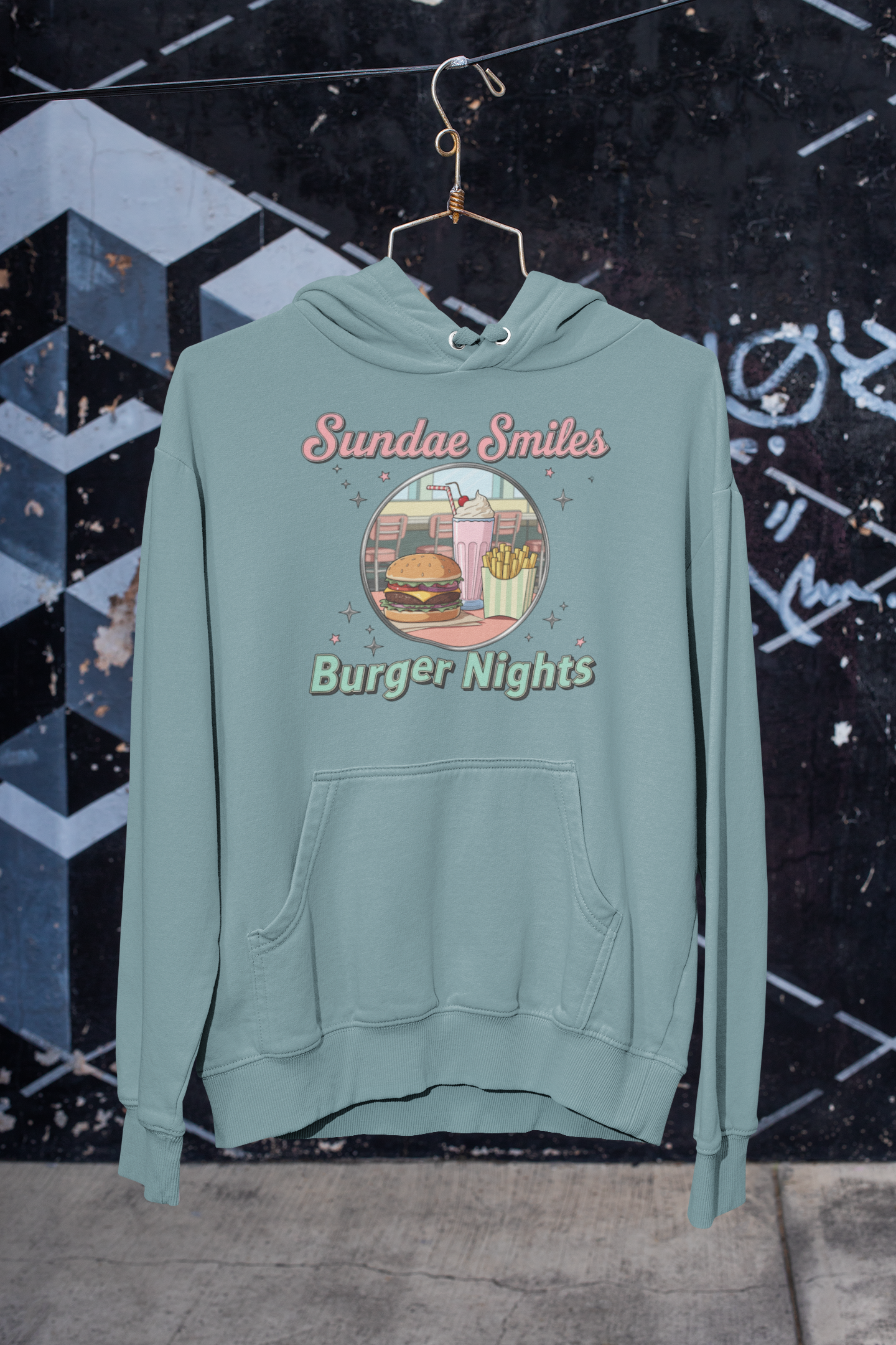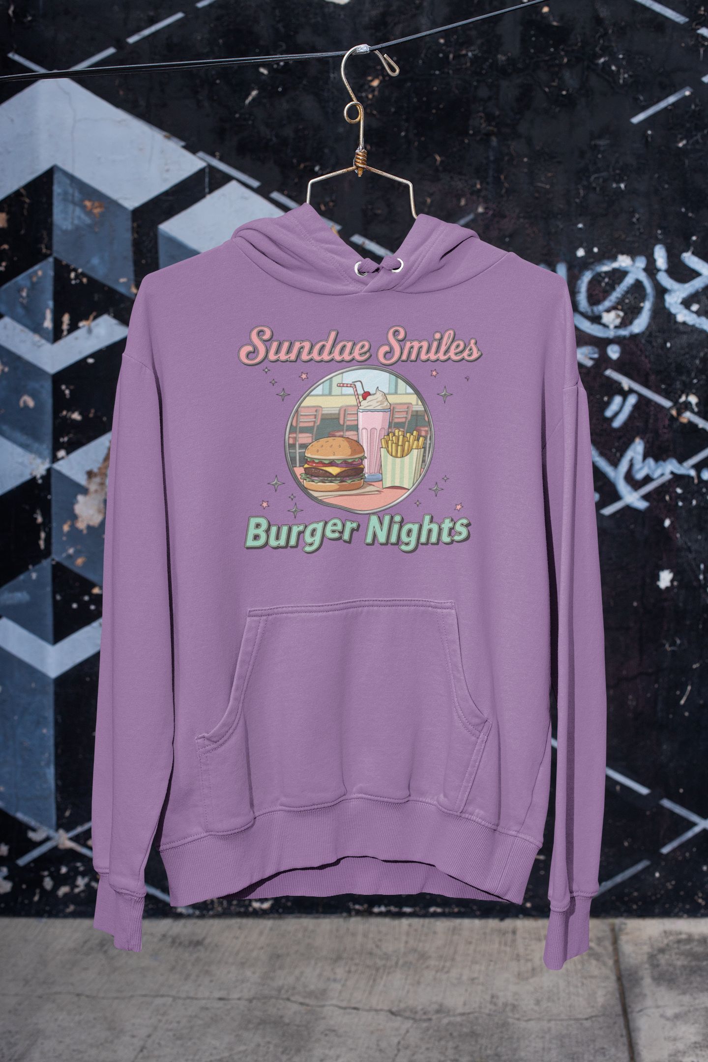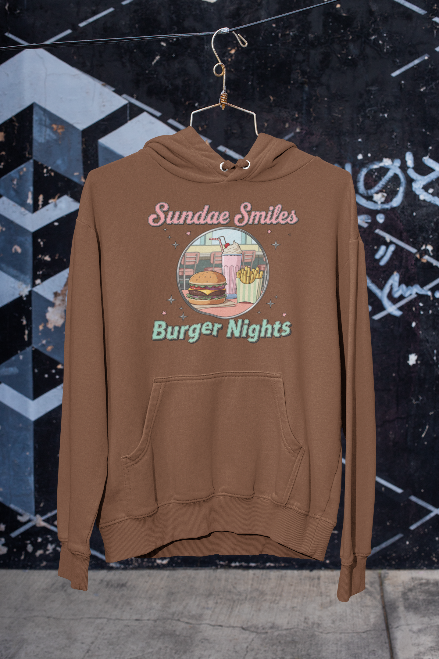 The Sundae Smiles and Burger Nights Hoodie is all about good eats and good vibes! Made from ultra-soft Gildan Softstyle fleece, it’s your new favorite for late-night burger runs, ice cream parties, or just lounging with friends. The fun foodie graphic and comfy classic fit make every night feel like a treat.